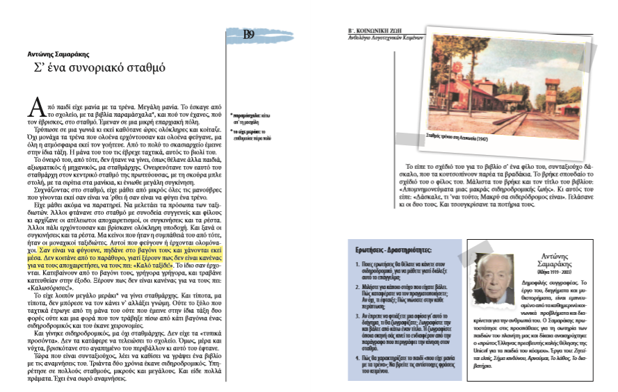 Διαβάζω προσεκτικά το κείμενο "Σ' ένα συνοριακό σταθμό" από το Ανθολόγιό μας στη σελίδα 67 είτε πατώντας εδώ και πηγαίνοντας στην αντίστοιχη σελίδα είτε από την παρακάτω εικόνα.